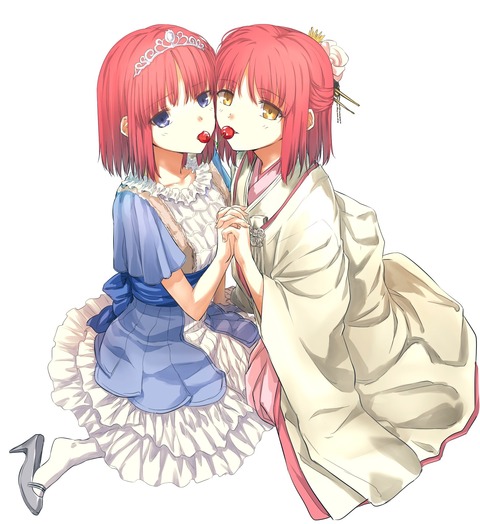 【FGO】琥珀さん&翡翠ちゃんが一緒にさくらんぼを食べるイラスト!! あぁ^~姉妹百合いい!