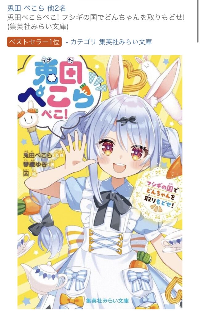 【朗報】兎田ぺこーらさんの小説、大谷を超えて全書籍ランキング1位へwwwwwwwwwwwwww
