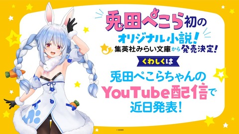 【ホロライブ】兎田ぺこらちゃん初の小説の発売が決定! くわしくは兎田ぺこらちゃんのYouTube配信で近日解禁予定!