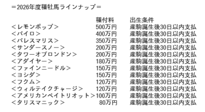 ダーレーの種付料でてたけど 他