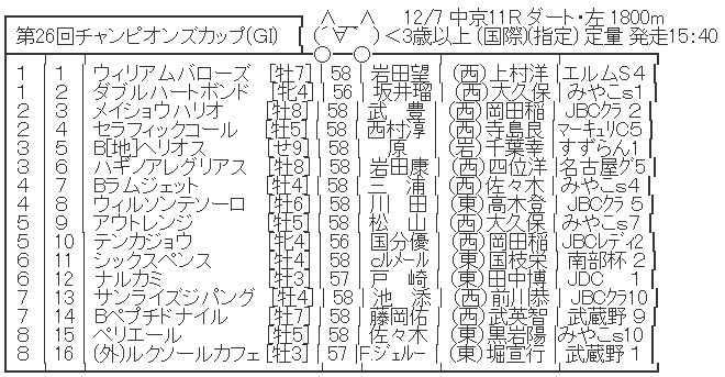 12/7(日) 第26回チャンピオンズカップ(GⅠ) part3