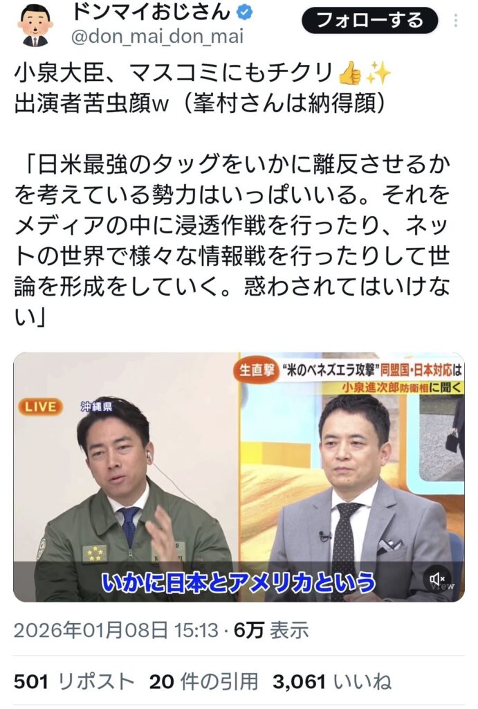 小泉防衛大臣「日米のタッグを離反させようとする勢力はいっぱいいる。惑わされてはいけない」 [1/8]
