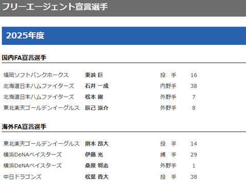 NPBフリーエージェント宣言選手が公示 DeNAからは伊藤光、桑原将志が海外FA宣言選手に