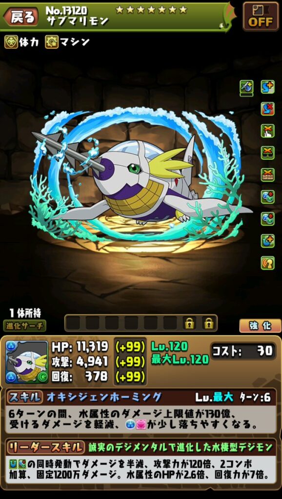 【パズドラ】サブマリモンの上限130億・軽減・目覚めループスキルは使い勝手良さそう