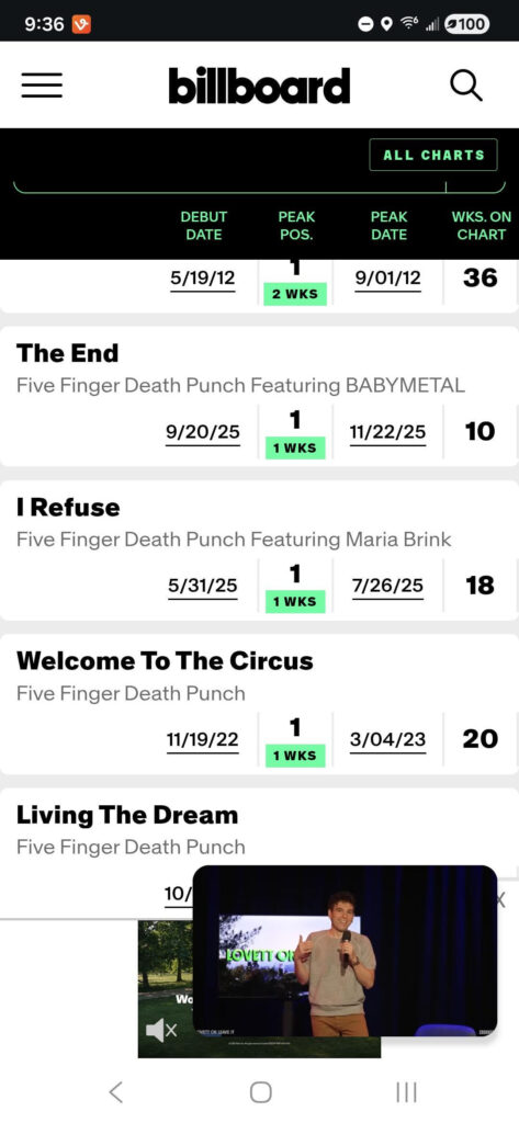 【海外】BABYMETALがビルボードのメインストリームロックエアプレイチャートで1位を獲得