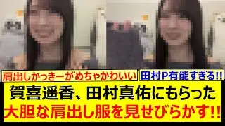 賀喜遥香、田村真佑にもらった大胆な肩出し服を見せびらかす!!【乃木坂46・のぎおび・乃木坂配信中・乃木坂工事中】
