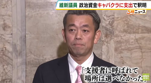 政治資金でキャバクラの維新議員「あくまで相談を受ける場所として使っただけ。店側の従業員から接待を受けることもなく、意見交換が終わると私はすぐ帰った」