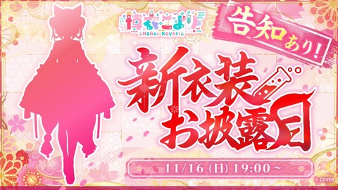 【ホロライブ】11/16(日)19:00から、博衣こより新衣装お披露目