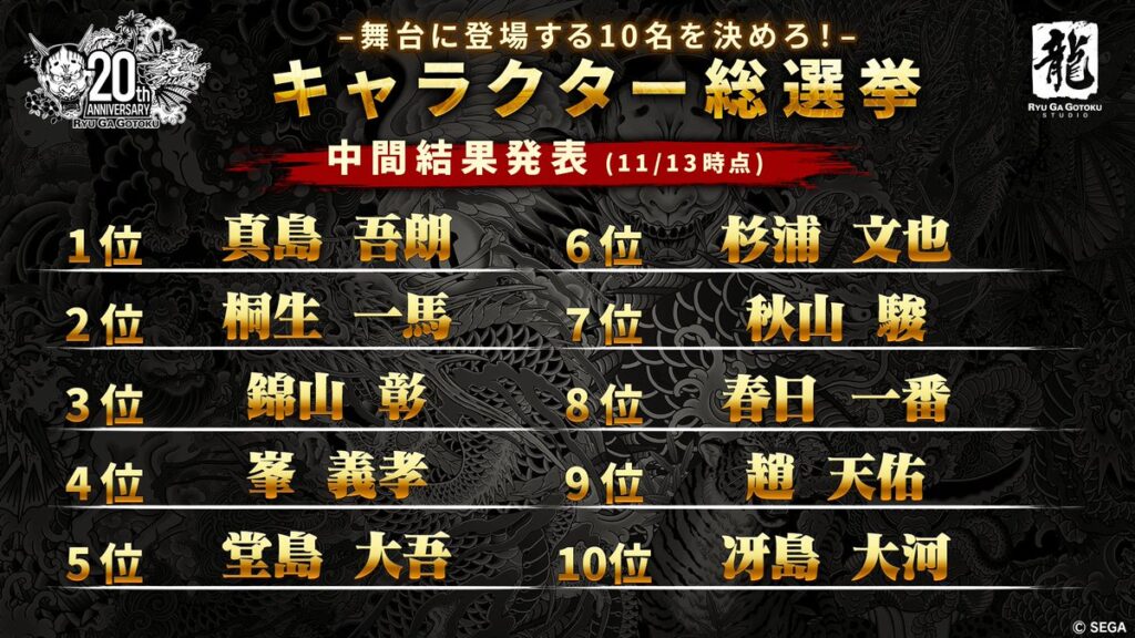【画像】龍が如くキャラクター総選挙の結果発表!【ゲーム】